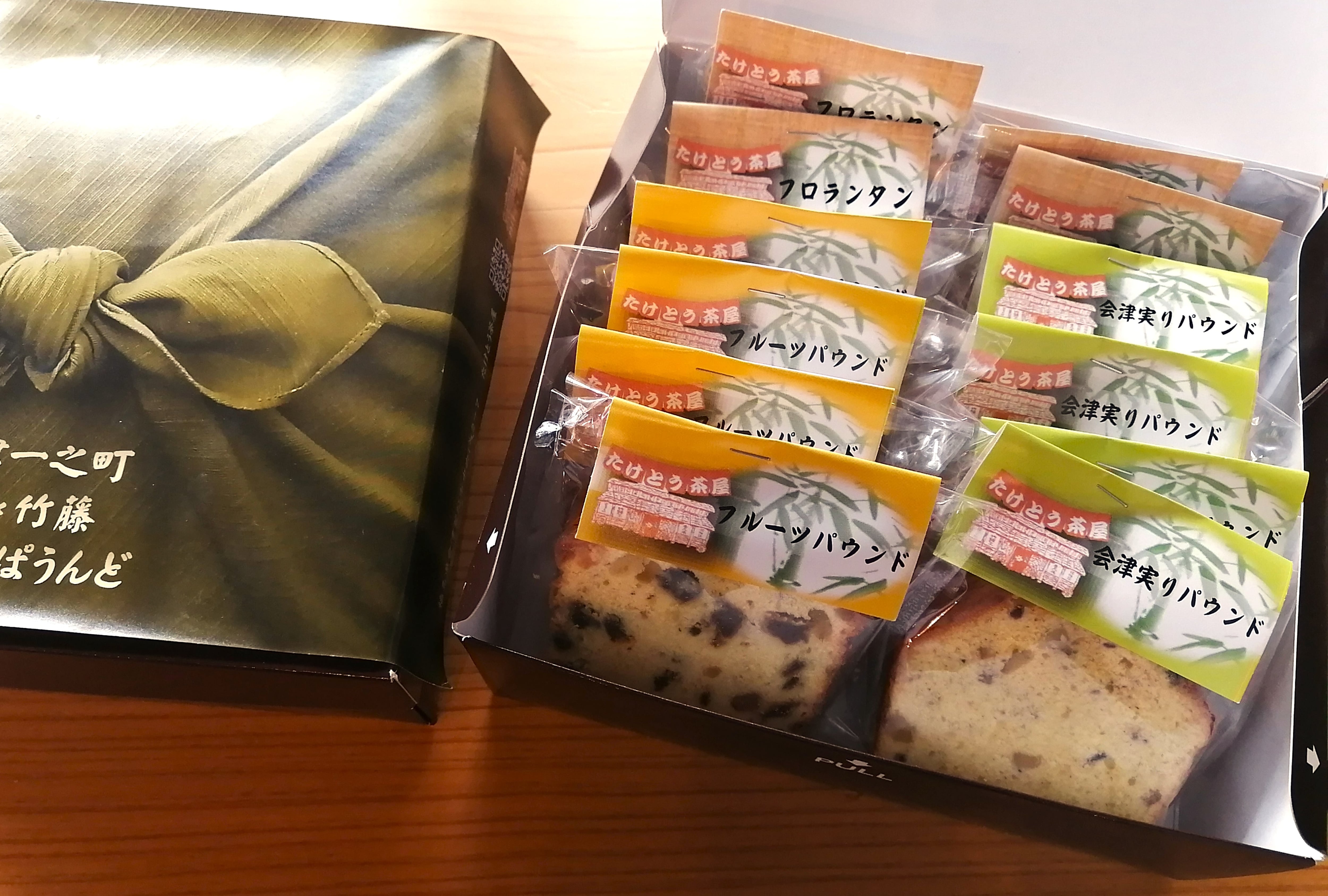 皇室献上品としても知られる会津身知らず柿、会津高田梅と会津産のそば粉と会津産くるみ、洋ぐるみを混ぜて焼き上げた会津実りパウンド